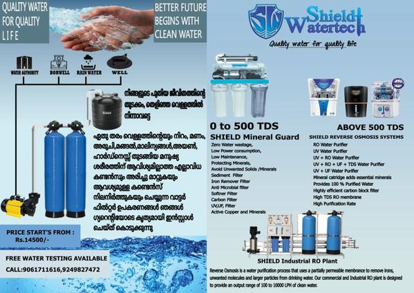 Shield Water Tech Continue To Carry The Core Concepts Of providing Healthy Drinking Water Solutions For Its Customer's And Is Dedicated To Develop Our Own Method To Enhance Our Capabilities In The Future. We are providing Quality Water Purifier, RO Plant, Water Filter, Spare parts and the Sales and Services In Alappuzha and Across Kerala. You can trust with us in Quality Assurance, Easy to Maintain, Value for Money, On time Delivery. Aquaguard ... View More